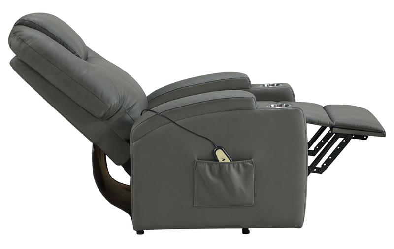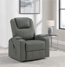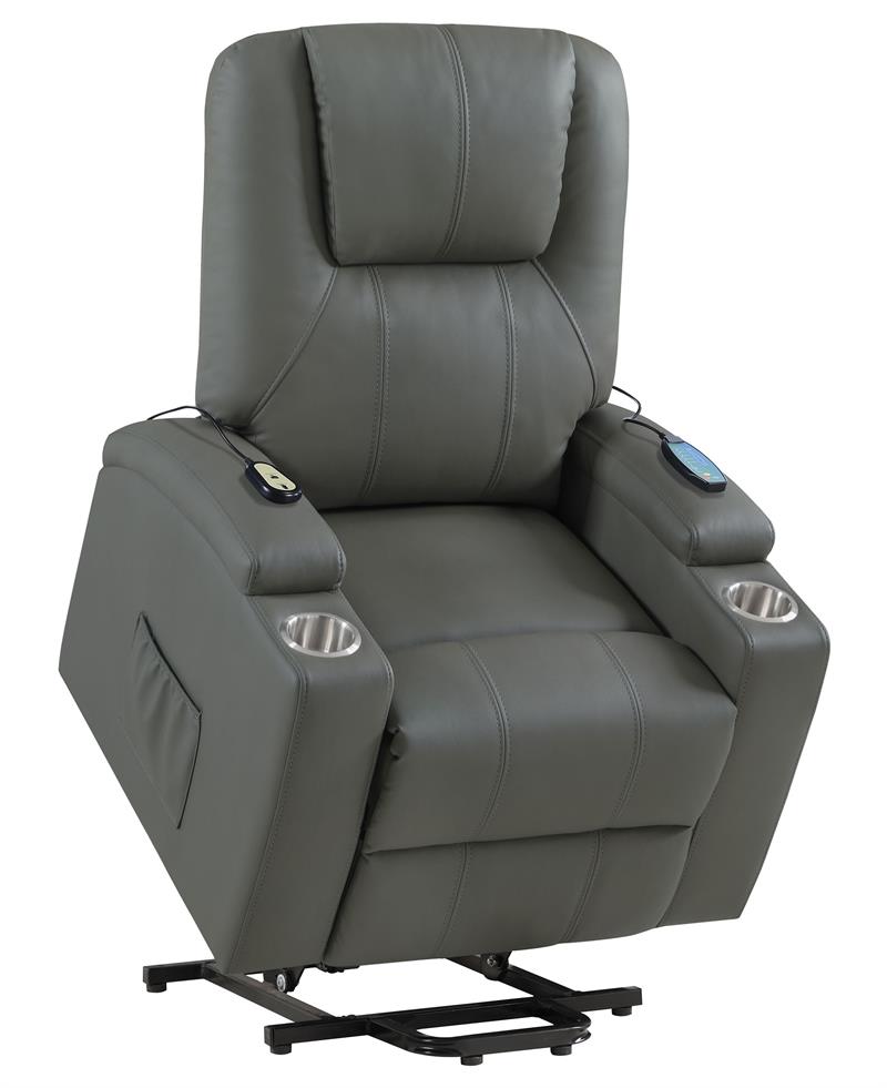 The Armstrong power lift recliner by Coaster, delivers premium comfort and functionality, perfect for relaxing in style. The chair features luxurious faux leather upholstery and an ergonomic design to support your body at every angle. The power lift mechanism ensures easy movement in and out of the chair, offering assistance for standing or sitting with minimal effort. With integrated cup holders and side storage pockets, convenience is at your fingertips. The chair also includes massage and heat functions, allowing you to unwind and soothe your muscles after a long day. The wired remote control provides effortless operation of all features, from reclining to massage intensity.