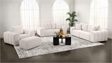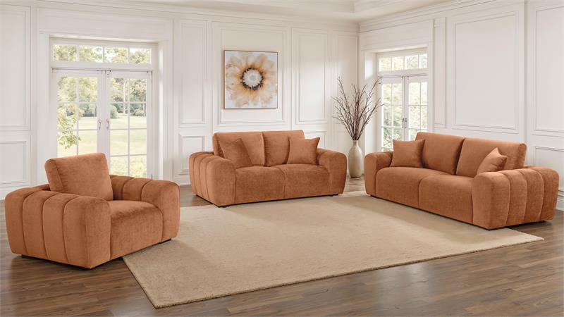 Bold curves and sculptural comfort define the Burnett modern sofa set by Coaster, blending relaxed luxury with artistic form. Oversized arms and deep cushions create an inviting silhouette, while ultra-soft chenille upholstery offers a rich, cozy texture. Built from solid rubberwood and engineered wood, each piece balances visual impact with everyday durability. Perfect for living rooms, lounges, or open-concept interiors that embrace bold style.