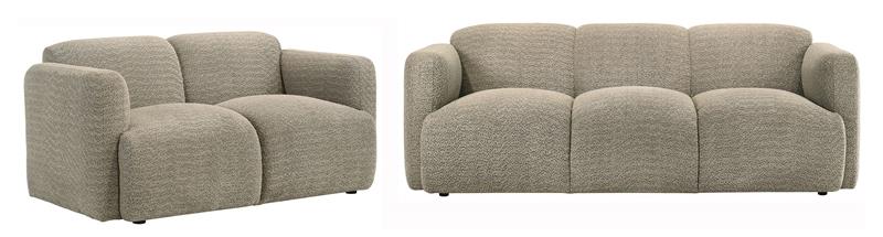 The Dorset sculptural sofa set by Coaster, blends soft curves with modern simplicity for a cozy, elevated lounge experience. Each piece is wrapped in richly textured fabric and designed with a low-profile frame, rounded edges, and wide track arms that invite you to unwind. High-quality foam and pocket coil seating ensure supportive comfort that lasts. With its seamless silhouette and tactile finish, this sofa set offers minimalist warmth and relaxed sophistication for any contemporary living space.