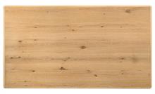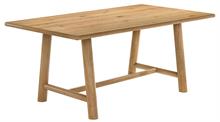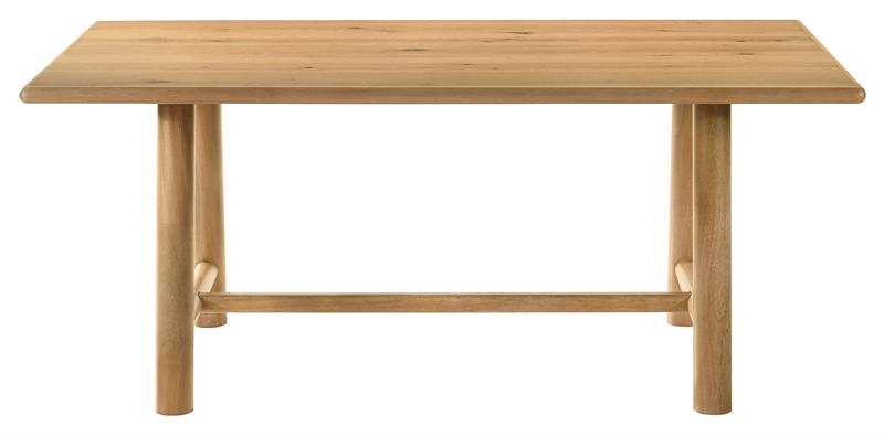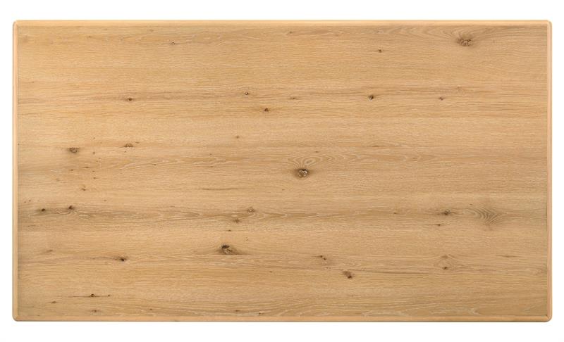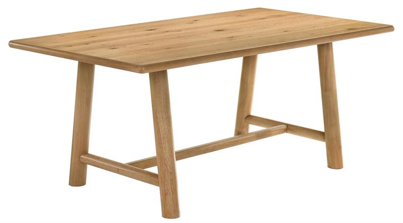 gathering. The rectangular table features a washed oak finish with a