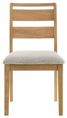 bouclé upholstered seats. Built from solid rubberwood and engineered