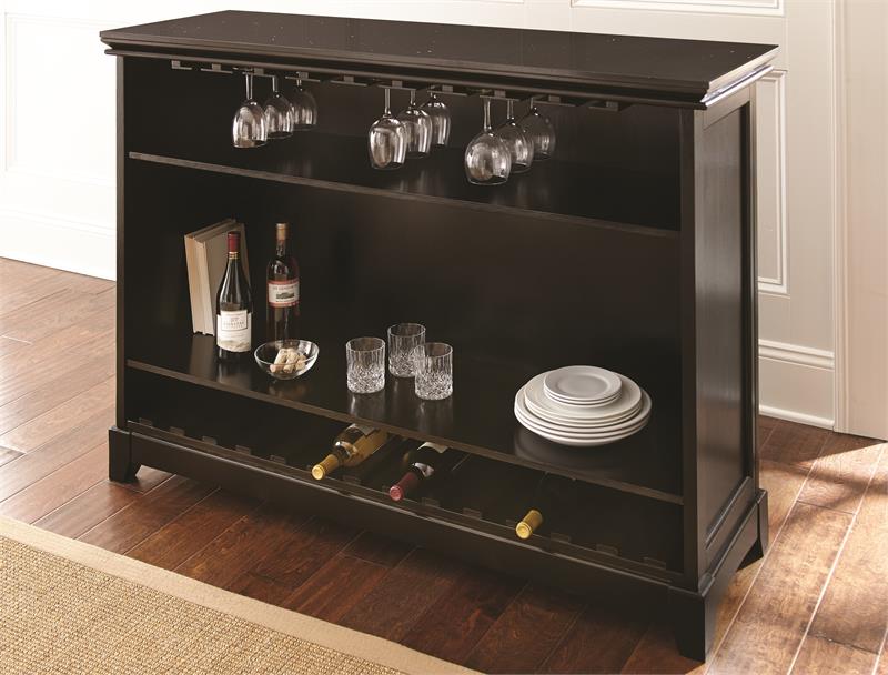 The Garcia bar by Steve Silver, will be the focal point of your entertaining space. This bar is constructed of hardwood solids and veneers in an ebony