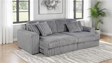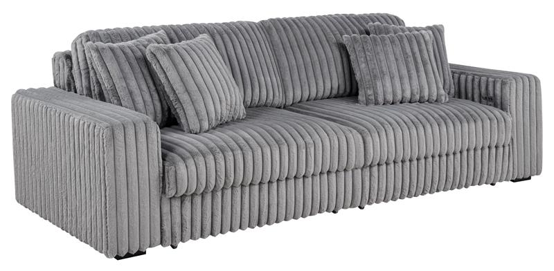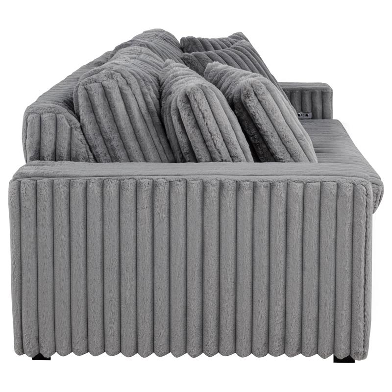 Striking and indulgently soft, this modern sofa set blends bold styling with innovative comfort. Deep vertical channel tufting enhances the rich corduroy upholstery, while dual power chaise functionality allows either side to extend independently, transforming the sofa into a full lounging surface. Wide arms, plush foam cushioning, and an integrated control panel with USB-A and USB-C charging bring next-level convenience. Designed for luxurious, tech-savvy relaxation.
