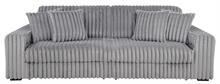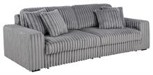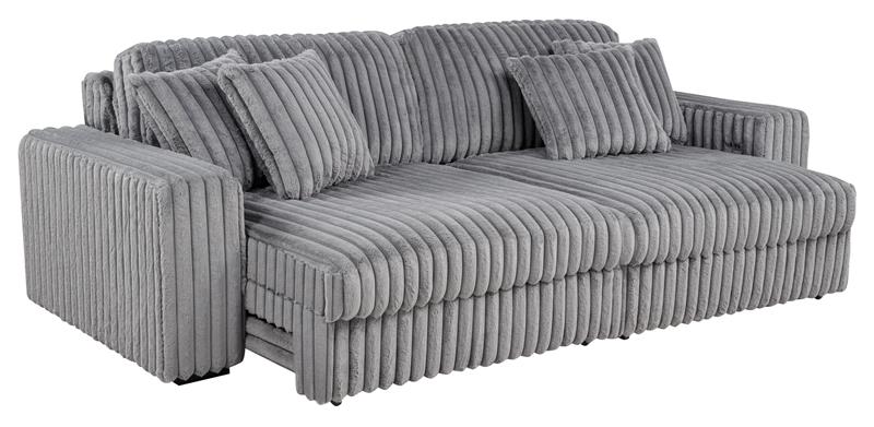• Contemporary sofa set in grey corduroy features deep channel tufting and dual power chaise design