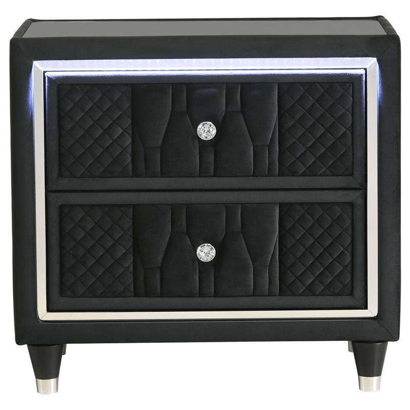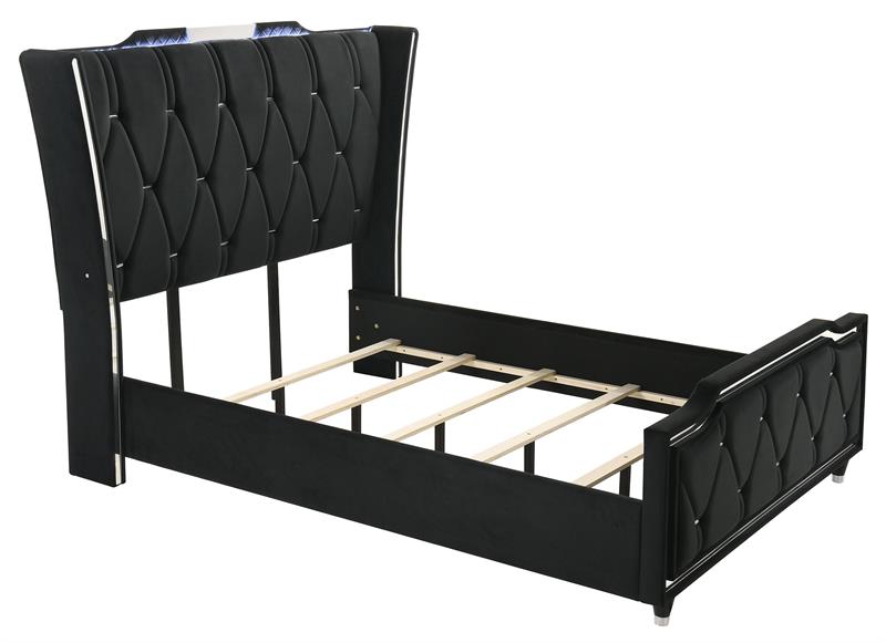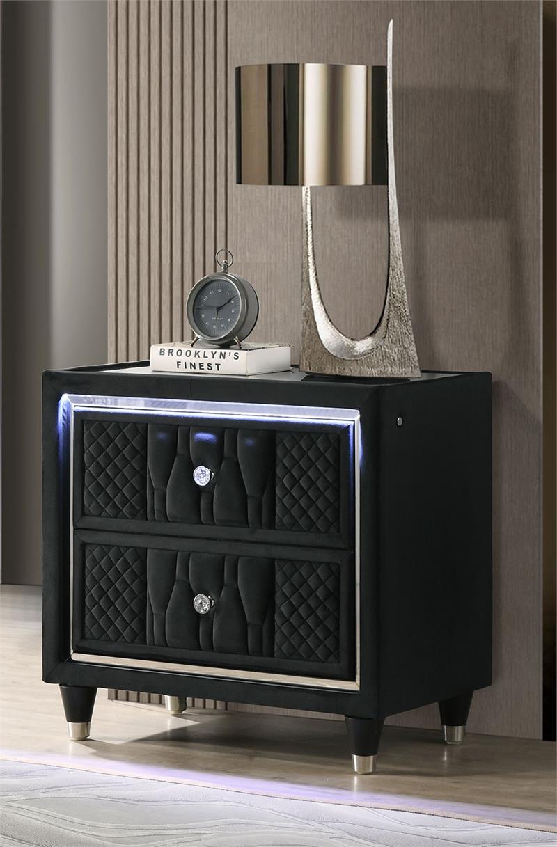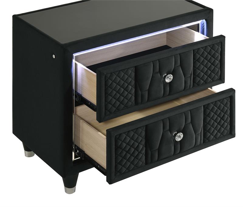 Paired with a tufted LED wingback bed, solid rubberwood legs nightstand