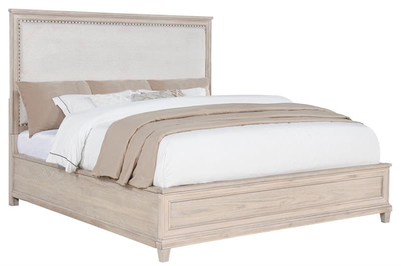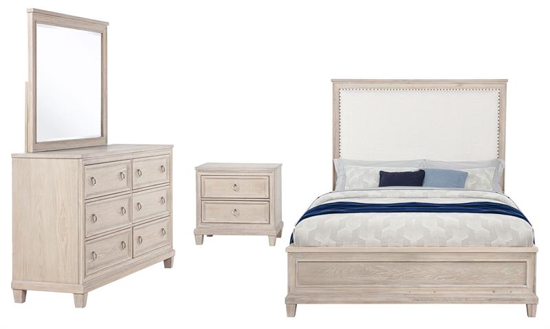 Rooted in tradition and softened by coastal charm, the Pembroke bedroom set by Coaster, brings timeless grace to every corner of the room. Washed oak frames each piece in warmth and natural texture, while subtle molding and polished ring pulls lend a refined touch. Cream fabric and gentle curves add softness where needed, while hidden conveniences like cable access and smooth glides speak to thoughtful design. Crafted from oak veneer, poplar, and engineered wood, the set offers a serene blend of beauty and utility.