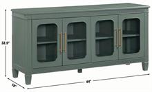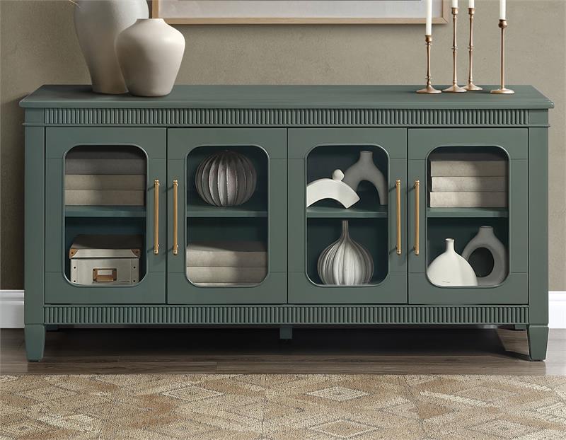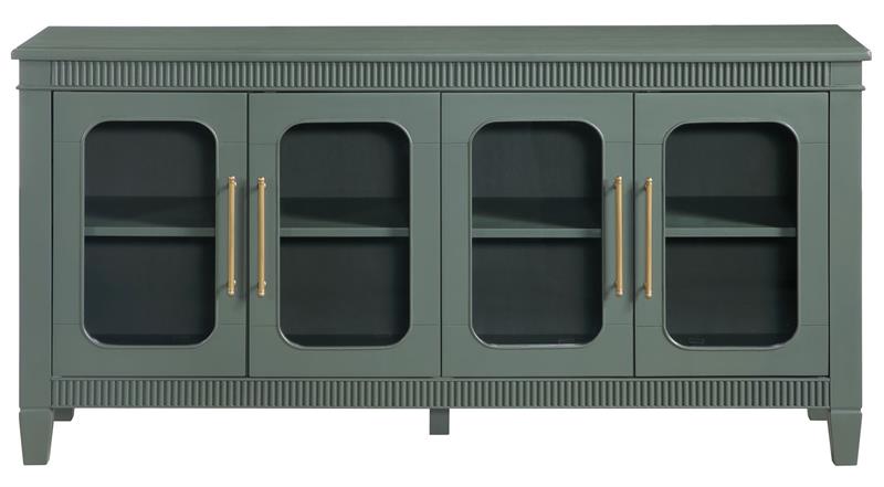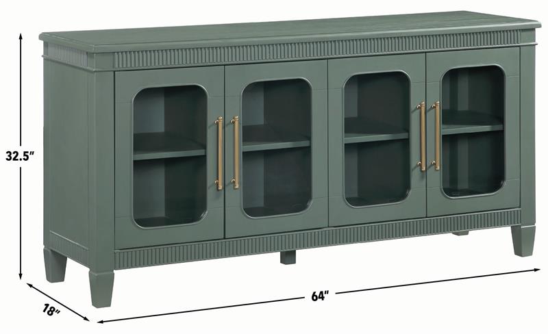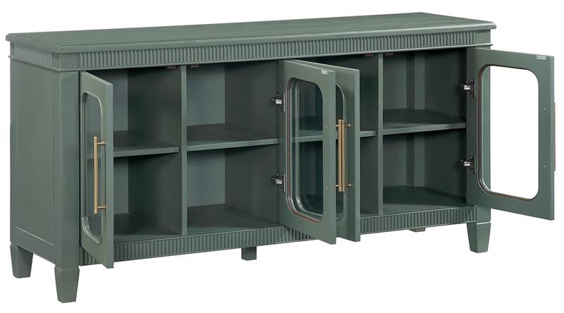 The Preston Green Server by Steve Silver, blends classic styling with modern versatility, making it a standout accent for any room. Finished in a soft sage green, it features dentil molding and rounded glass doors that create an elegant, inviting look. Four adjustable shelves allow customized storage within four spacious cubbies, while magnetic latch doors provide secure, reliable closure. Perfect as a dining server, entertainment console, hallway accent, or sofa table, Preston offers beautiful display options, functional organization, and timeless charm for any home.